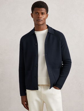 Stitch-Detail Zip-Through Knit Shirt In Navy