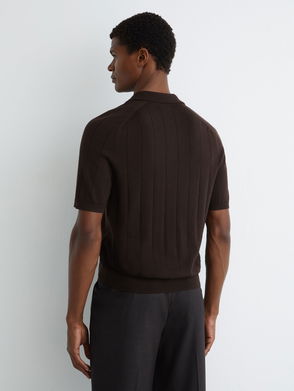 Merino Wool Wide-Rib Polo Jumper In Chocolate Brown