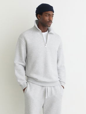 Cotton-Blend Heavyweight Zip Sweatshirt In Grey Melange