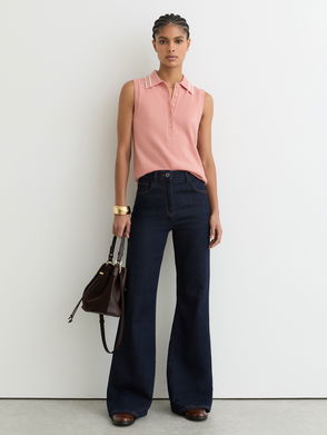 Wool-Cashmere Sleeveless Polo Top In Pink/Ivory