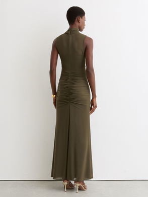 Ruched Sleeveless Maxi Dress In Khaki Green