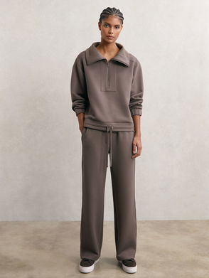 Premium Interlock Wide-Leg Joggers In Taupe Brown