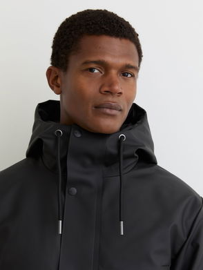 Rains Long Hooded Parka Coat In Black