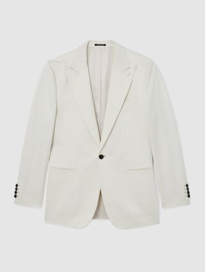Textured Single-Breasted Blazer Tailored-Fit Cotton-Blend In Ivory