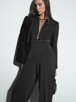 Petite Plunge-Neck Split-Sleeve Jumpsuit In Black
