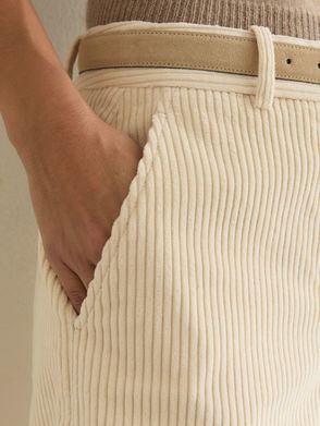 Cotton Corduroy Wide-Leg Trousers In Cream