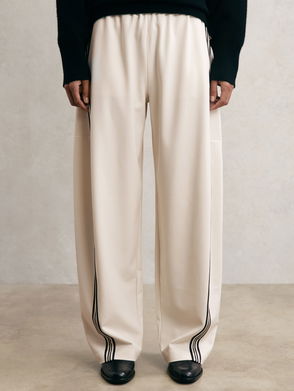 Petite Barrel-Leg Side-Stripe Trousers In Cream