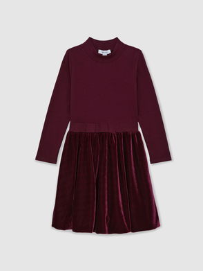 13-14 Yrs Velvet-Skirt Jersey Skater Dress In Burgundy