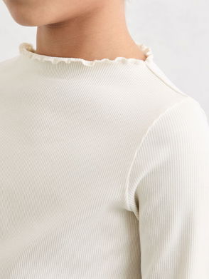 Stretch-Cotton Lettuce-Trim Ribbed Top In Ecru