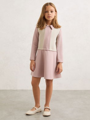 9-13 Yrs Premium Interlock Colour-Block Dress In Neutral