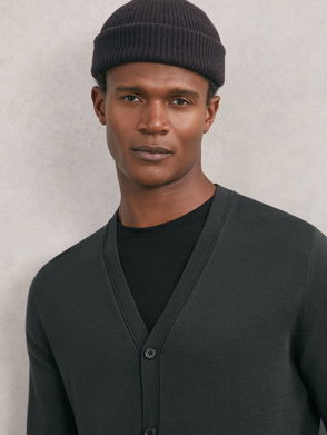 Shawl-Collar Cardigan With Wool In Dark Olive Green