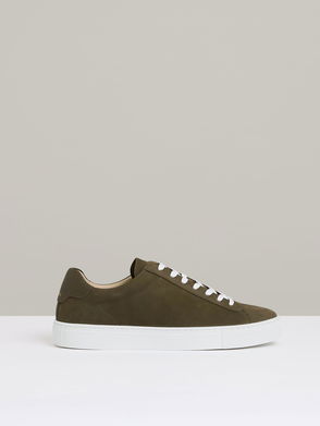 Nubuck-Leather Low-Top Trainers In Olive Green
