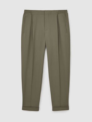 Relaxed Drawstring Trousers With Turn-Ups In Sage