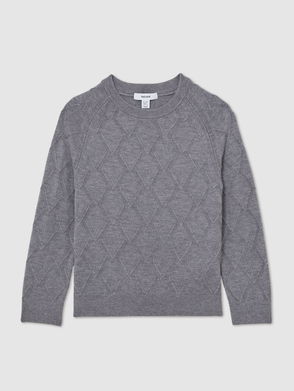 13-14 Yrs Diamond-Stitch Crew-Neck Jumper In Grey Melange