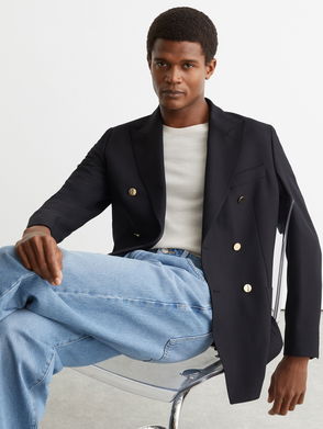 Hopsack Double-Breasted Blazer Classic-Fit With Wool In Navy