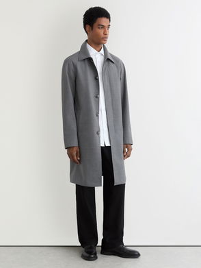 Single-Breasted Raglan Raincoat With Wool In Grey