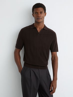 Merino Wool Wide-Rib Polo Jumper In Chocolate Brown