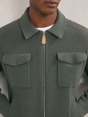 Merino Wool Twin-Pocket Cardigan In Khaki Green
