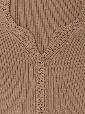 Crochet-Trim Rib-Knit Top In Taupe Neutral