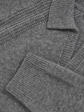 Wool-Cashmere Open-Collar Jumper In Mid Grey Melange