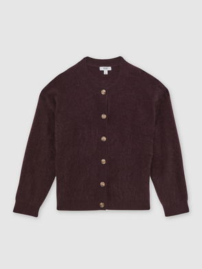 100% Brushed Cashmere Cardigan In Burgundy