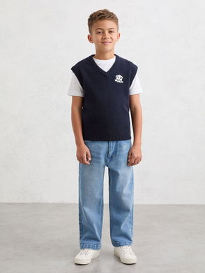 13-14 Yrs Monogram Wool-Blend Relaxed Vest In Navy Blue