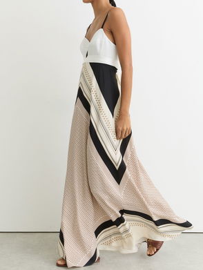 Scarf-Print Tie-Back Maxi Dress In Ivory/Black