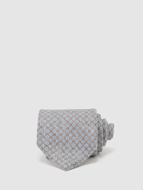 Silk Micro-Floral Medallion Tie In Brown / Soft Blue