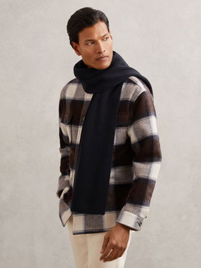 Wool-Cashmere Check Scarf In Navy