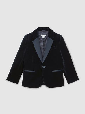 3-9 Yrs Single-Breasted Velvet Tuxedo Blazer In Navy