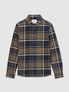 Cotton Check Flannel Shirt In Dark Navy