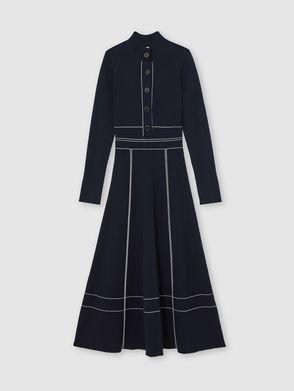 Petite Contrast-Stitch Knitted Midi Dress In Navy