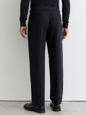 Wool-Blend Flannel Wide-Leg Trousers In Navy
