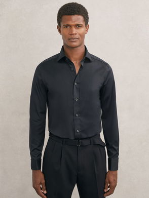 Cotton-Sateen Folded-Cuff Shirt In Navy