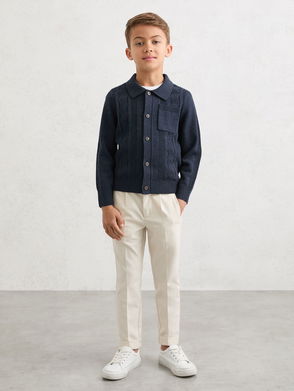 Stitch-Detail Polo-Collar Cardigan Cotton-Blend In Navy