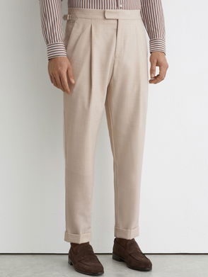 Tapered-Fit Side-Adjuster Suit Trousers With Wool In Stone