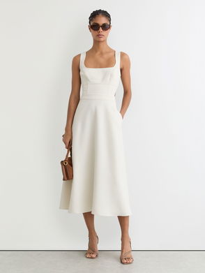 Waisted Cut-Out Twill Midi Dress In Ivory