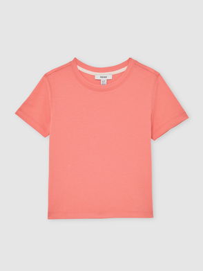 9-13 Yrs Cotton Crew-Neck T-Shirt In Peach