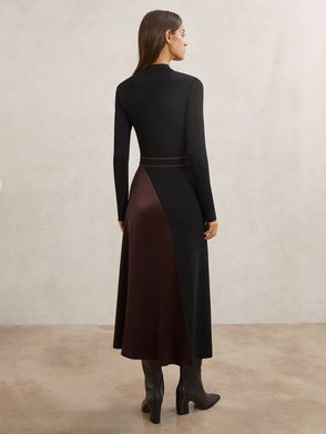 Colour-Block Knitted Midi Dress In Black/Burgundy