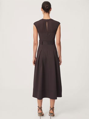 Mesh-Panel Belted Pleated Midi Dress In Burgundy
