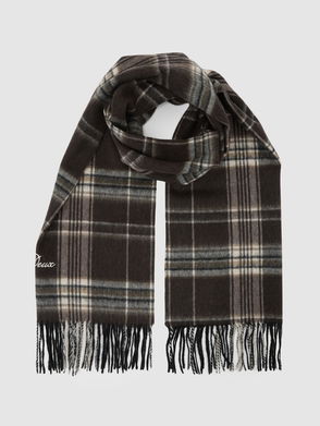 Wool-Cashmere Check Scarf In Charcoal Grey