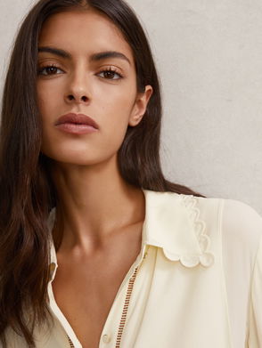 Scallop-Trim Ladder-Stitch Shirt In Cream