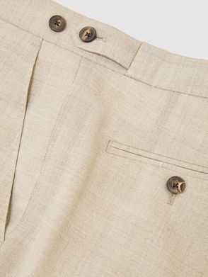 Wool Textured Tailored-Fit Trousers In Oatmeal Brown