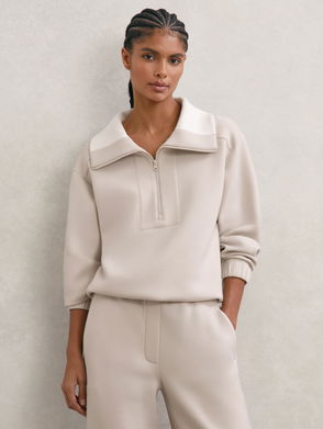 Premium Interlock Half-Zip Sweatshirt In Stone Neutral