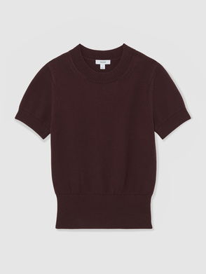 Stretch-Cotton Asymmetric-Neck Top In Chocolate Brown