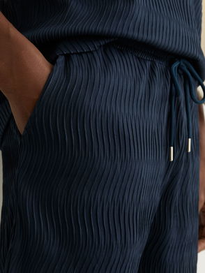 Textured-Wave Drawstring Shorts In Airforce Blue