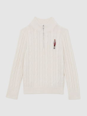 3-9 Yrs Wool-Blend Half-Zip Nutcracker Jumper In Off White