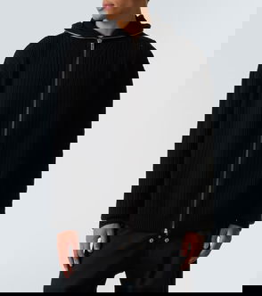 Ribbed-knit Virgin Wool Zip-up Sweater