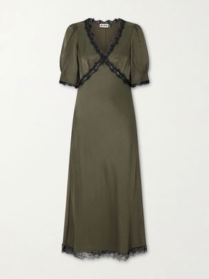 Lucie Lace-Trimmed Embroidered Crepe De Chine Midi Dress
