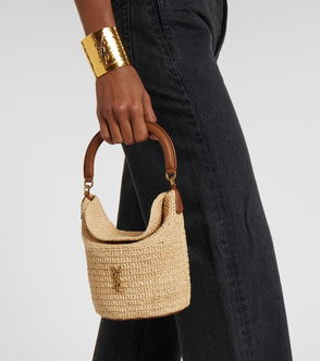 Gaby Leather-trimmed Raffia Bucket Bag